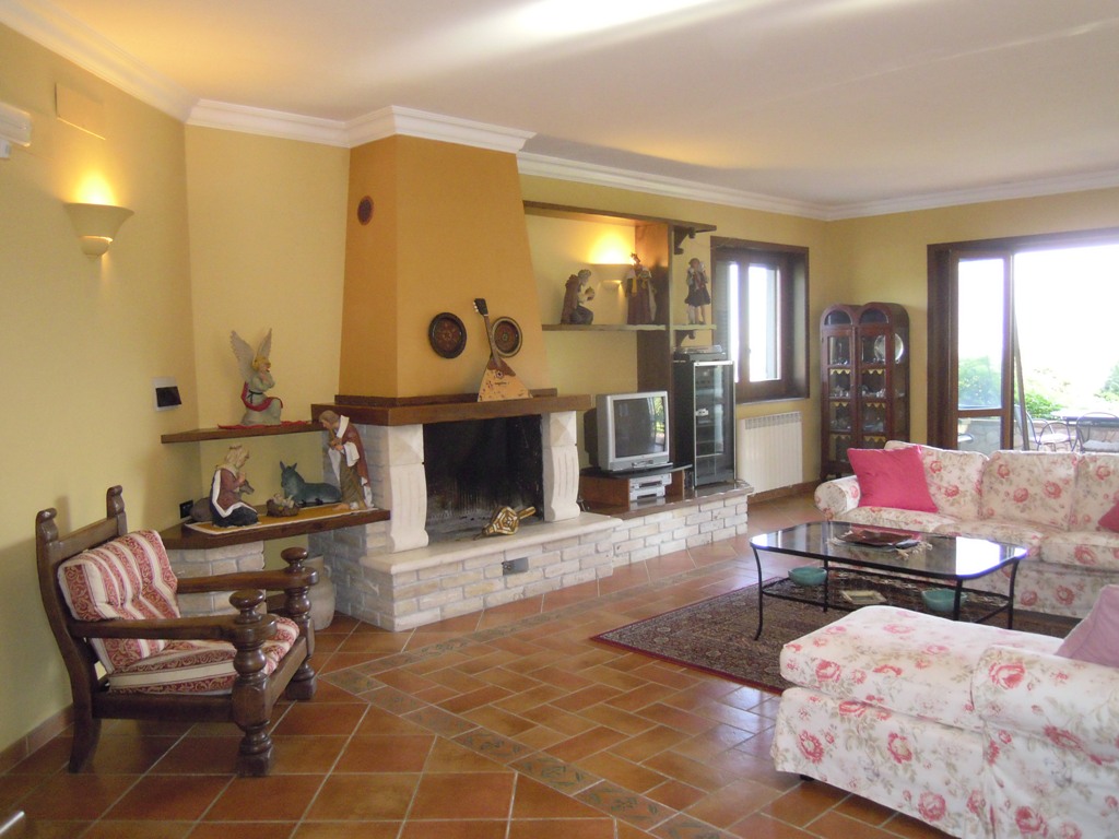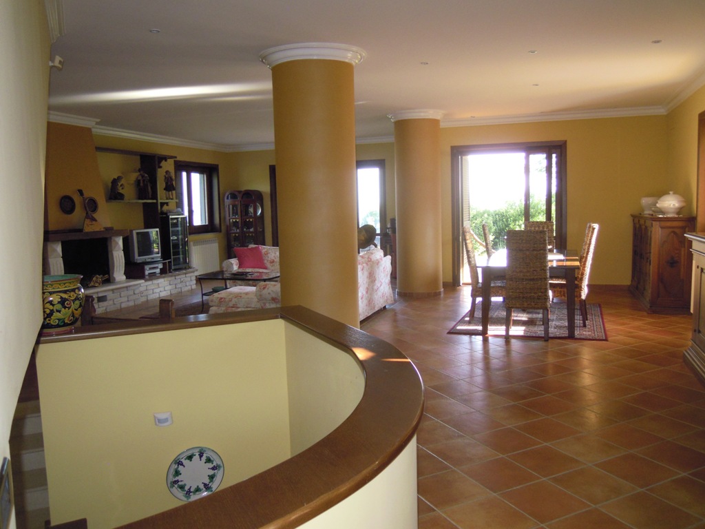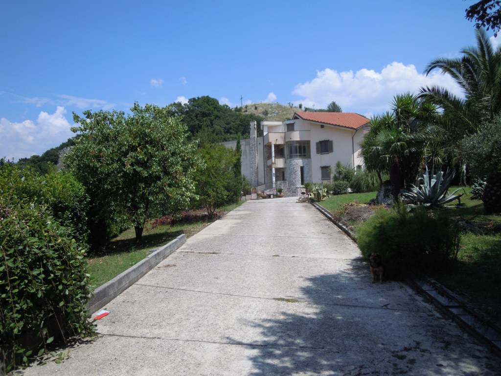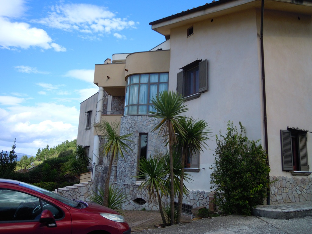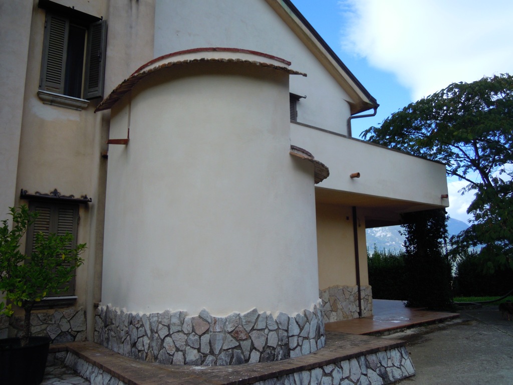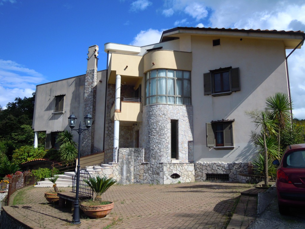 La casa sorge su terreno di circa mq 3300, completamente recintata, muro lato inferiore di sostegno con sottostante palificazione. E' su 4 livelli: piano seminterrato composto da un ampio locale con cucina e forno artigianali, camino, cantina, lavanderia, deposito etc...; piano terra composto da ampio ingresso in marmi e ferro battuto, salone, cucina, tinello e bagno; I piano: nr. 3 vani letto, ognuno con bagno, nr. 2 terrazze, pavimenti parquet, ceramiche vietresi; piano mansarda composta da vano letto con bagno, stanza stireria e lavanderia, nr. 2 ampie terrazze panoramiche + altro piccolo terrazzino. Locale caldaia con caldaia a metano per acqua sanitaria e cucina + nuova caldaia a basamento policombustibile. Abitabile oltre mq 400, tot. circa mq 700.