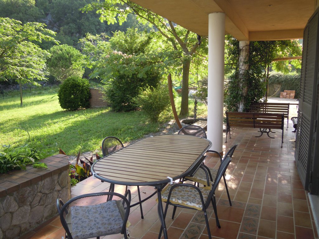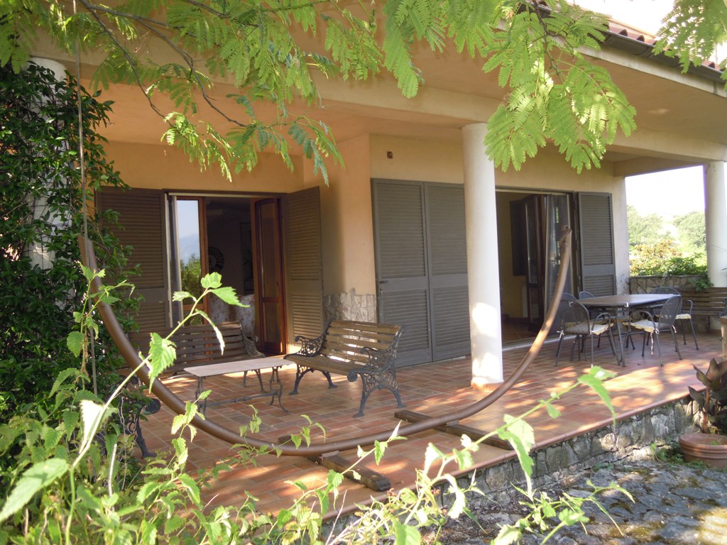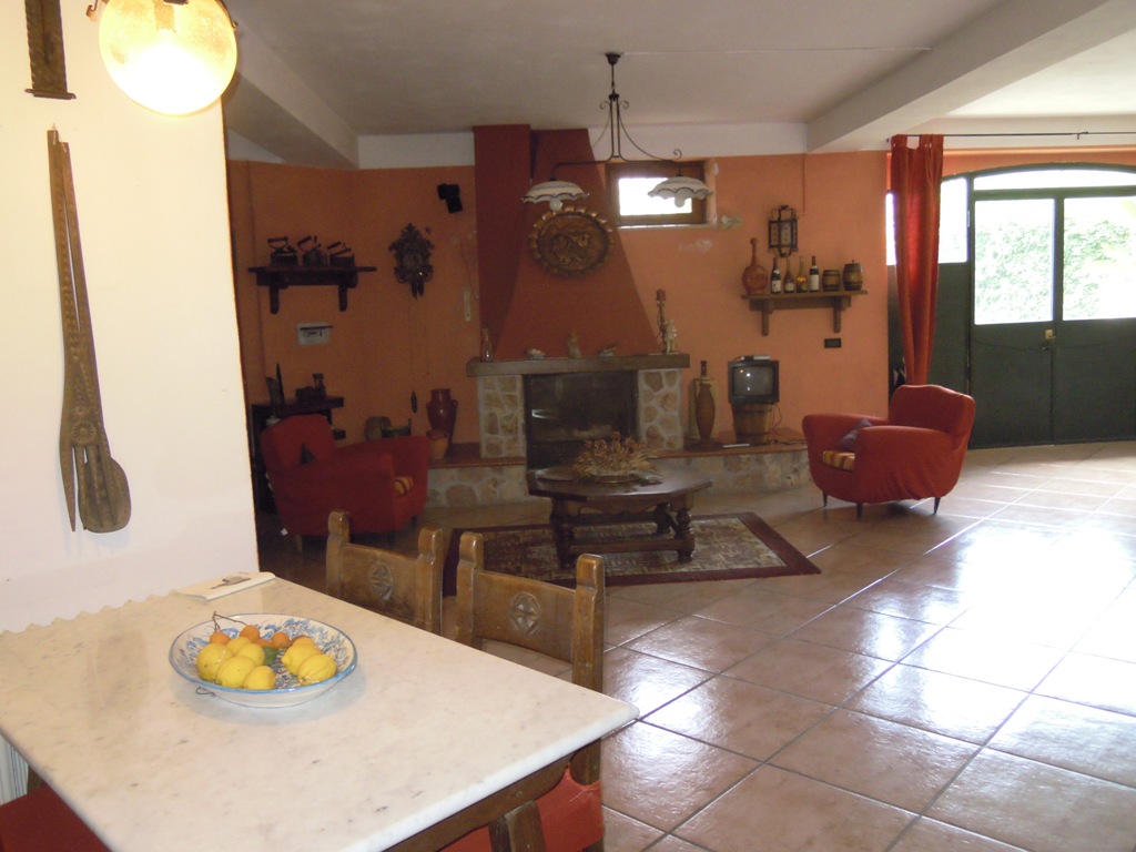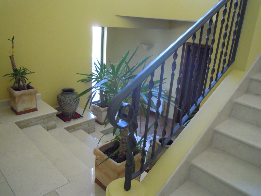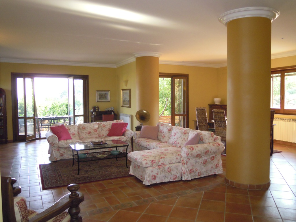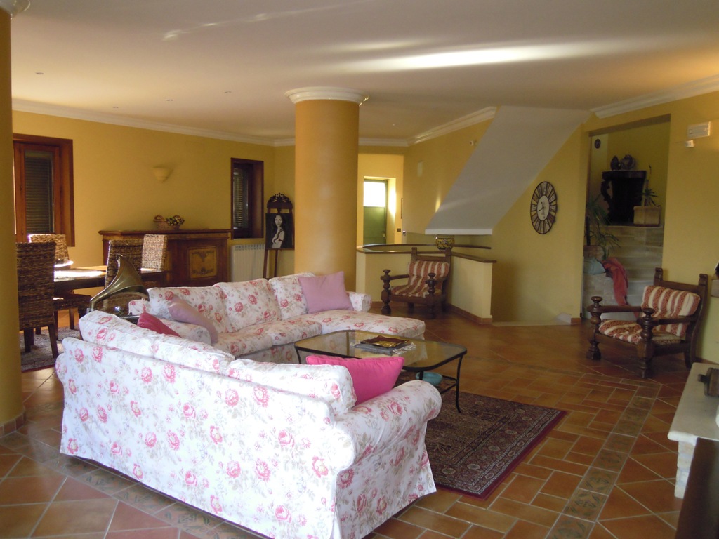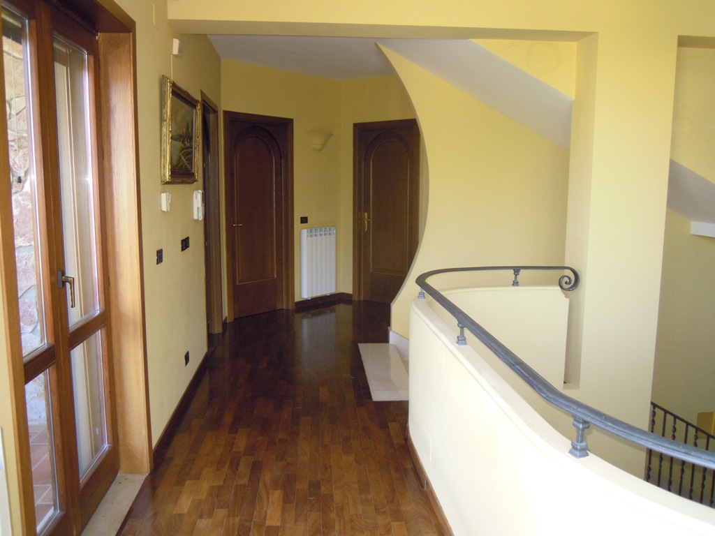 La casa sorge su terreno di circa mq 3300, completamente recintata, muro lato inferiore di sostegno con sottostante palificazione. E' su 4 livelli: piano seminterrato composto da un ampio locale con cucina e forno artigianali, camino, cantina, lavanderia, deposito etc...; piano terra composto da ampio ingresso in marmi e ferro battuto, salone, cucina, tinello e bagno; I piano: nr. 3 vani letto, ognuno con bagno, nr. 2 terrazze, pavimenti parquet, ceramiche vietresi; piano mansarda composta da vano letto con bagno, stanza stireria e lavanderia, nr. 2 ampie terrazze panoramiche + altro piccolo terrazzino. Locale caldaia con caldaia a metano per acqua sanitaria e cucina + nuova caldaia a basamento policombustibile. Abitabile oltre mq 400, tot. circa mq 700.