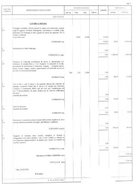 Danyna1978 ha scritto: Salve ho ricevuto da pochi giorni un preventivo per la demolizione del balcone abusivo. E' in cucina. In pratica sono stati uniti 2 balconcini alla romana. Non ho usufruito di nessuno dei tre condoni edilizi ed il tecnico mi dice che molto probabilmente non ce ne saranno più. Mi potreste dire se è giusto il prezzo? E' in pieno centro storico. Allego immagini del preventivo di demolizione balcone e ripristino stato dei luoghi. Il prezzo offerto è di 7245,00 euro